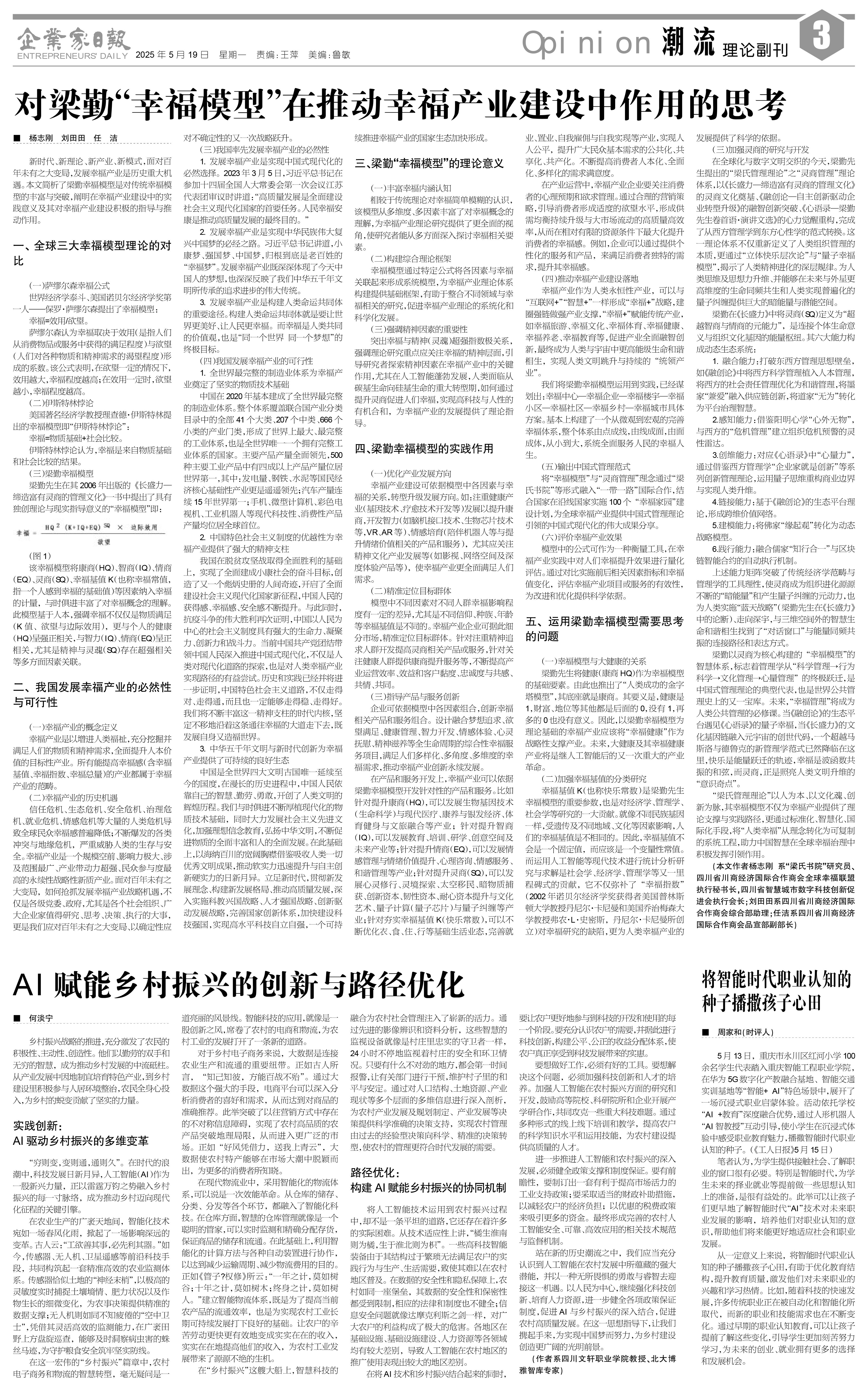 > 对梁勤“幸福模型”在推动幸福产业建设中作用的思考