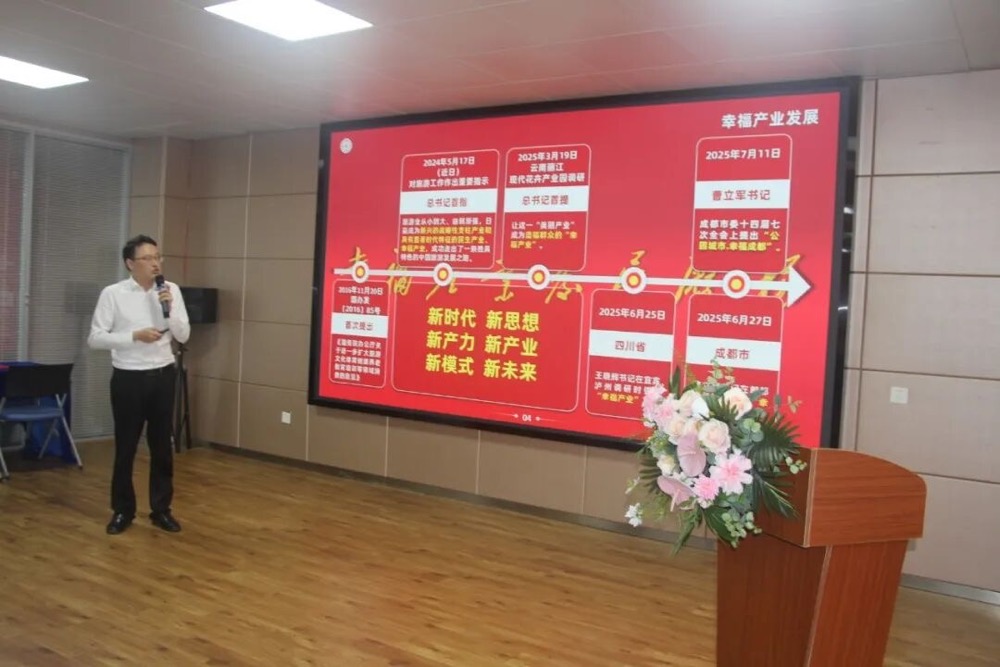 本次座谈会特别设置“幸福产业汇报”环节,川商国际商会副秘书长、四川省智慧城市数字科技创新促进会执行会长杨志刚作核心分享。他系统介绍了“幸福书院”的成立背景、运营理念与社会价值,并结合习近平总书记关于“幸福”的重要论述,深入阐释幸福书院在“推动企业家精神成长、强化企业社会责任、滋养企业家人文素养”三大方面的探索,引发在场嘉宾的广泛兴趣与认同。他强调,通过“幸福书院”建设推动“幸福企业”、“幸福产业”建设,是川商国际的独特优势,拥有完整的知识产权体系和数字资产的积累能力,未来发展潜力是巨大的。