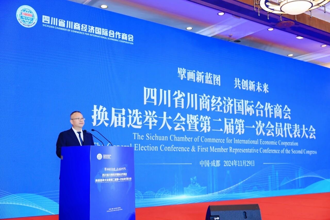 2024年11月29日,四川省川商经济国际合作商会(以下简称川商国际)换届选举大会暨川商之夜联谊晚会在成都金牛宾馆隆重举行。四川省民政厅社会组织管理局局长杨伟、四川省工商业联合会党组成员/副主席郑宗强、四川省企业联合会党委书记/会长彭渝、四川省委省政府决策咨询委员会副主任王海林等相关领导,以及巴西驻成都总领事馆副领事路易斯·古斯塔沃·马尔克斯等外国友人,以及川商国际的会员单位、分支机构、合作伙伴、新闻媒体、国内国际友好商协会的代表、社会贤达知名人士共计320余人参加、出席了此次盛会,共同见证了川商国际在新时代背景下的发展新篇章。