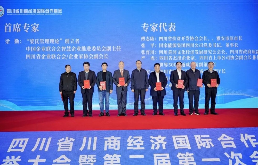 川商国际*委员会(川商智库)的建立与诞生,为“一带一路,共同富裕”、“川商出海,振兴川商”提供了人才保障与智慧力量。为此,大会主持人向与会代表公布了川商智库的特聘首席*、特邀*名单,相关领导为梁勤(特聘首席*)、为傅志康等特邀*代表颁发了聘书。特邀首席*梁勤代表*委员会在会上发表了讲话,他为商会的高质量发展提出了具有前瞻性和战略性的意见和建议,并为商会未来五年的发展方向提供了重要指导。