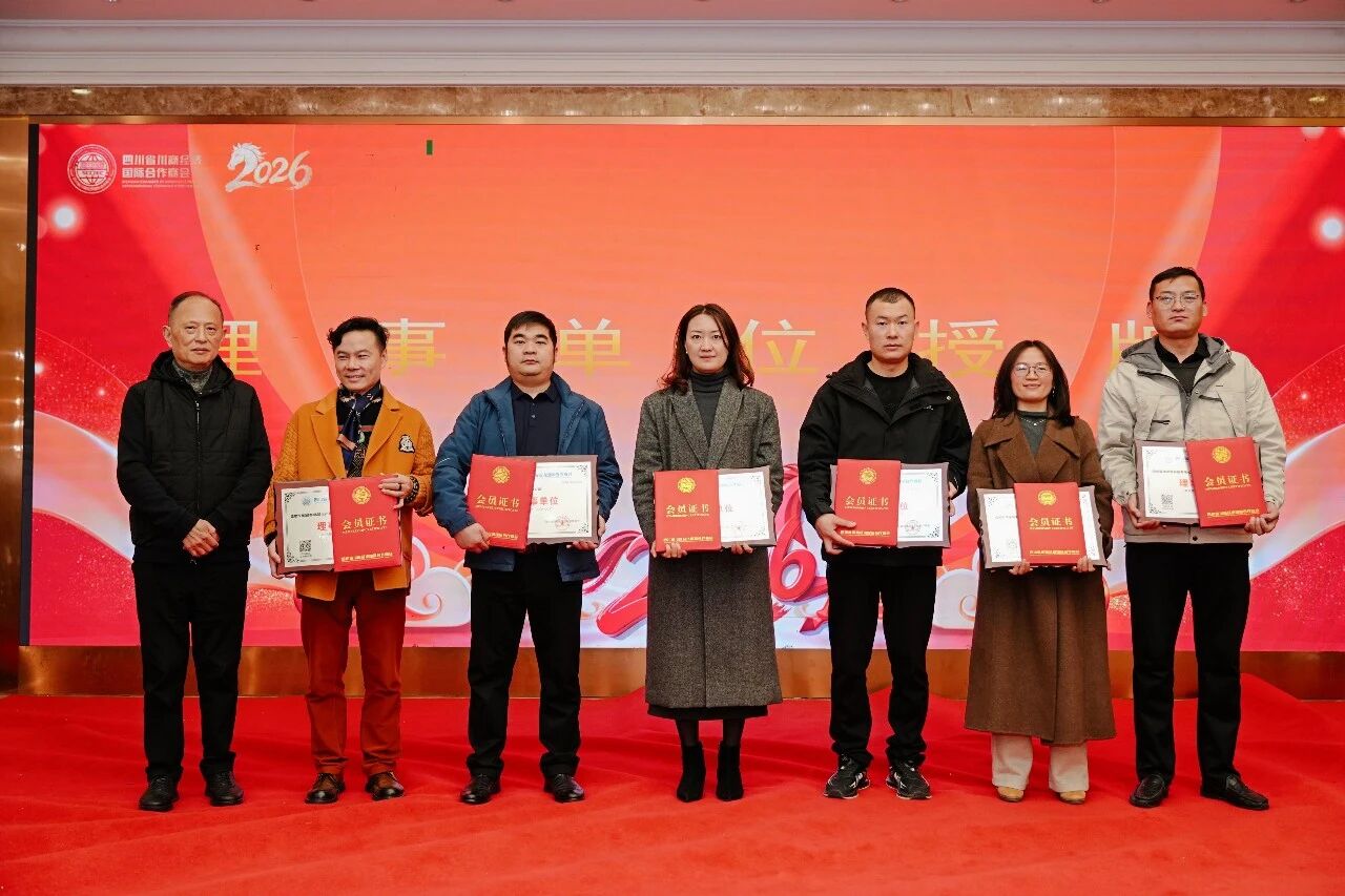 副会长单位授牌(3家) 胡成高会长为新晋核心力量——副会长单位授牌: 成都极顶科技有限公司、四川金恒达市政设施有限公司、成都蓝麦田旅游策划设计有限公司。